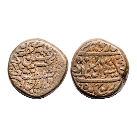 Alwar, Copper Takka, 17.92g, Sheodan Singh (1857-1874 AD), 1861. Rajgarh Mint, in the name of Queen Victoria, complete flan. KM 35.1. Very Fine, Very Scarce.
