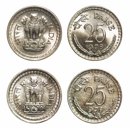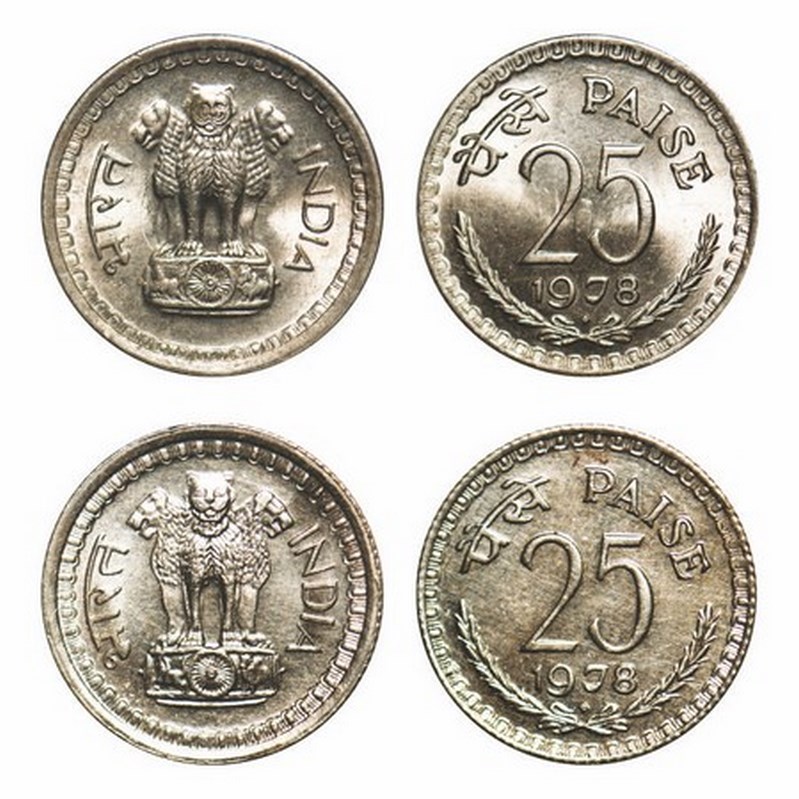 25 Paise, Cu-Ni, 2.56g (2 Coins), 1978. Bombay Mint, Two different dies types in Small and big lion. Uncirculated. Scarce.