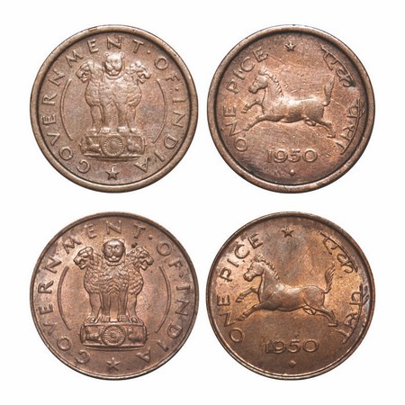 1 Pice, Bronze, 3.81, 3.89g (2 Coins), 1950, Horse type. Bombay Mint, two different die types Broad and narrow borders. Extremely to Uncirculated. Scarce.