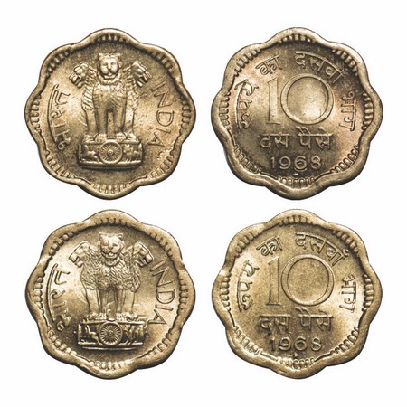 10 Paise, Ni-Br, 4.33g (2 Coins), 1968. Hyderabad Mint, Two different dies types in Small and big lion. Uncirculated. Scarce.