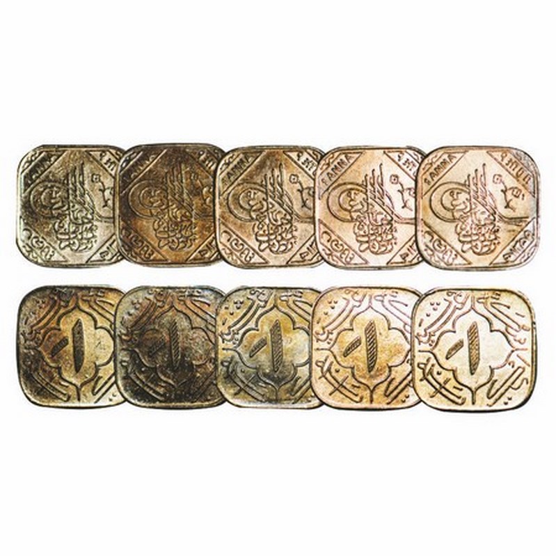 Hyderabad, Copper Nickel (5 Coins), Mir Usman Ali Khan, AH 1356, 1357, 1358, 1359, 1360. KM 49. Uncirculated, Scarce.