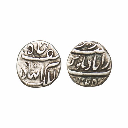Awadh, Silver Rupee, 10.80g, Saadat Ali, Najibabad Mint, AH (12)15 / 32 RY, in the name of Shah Alam II, Crescent on obv, vertical, fish, bud and Trident on rev. KM 116.7. very Fine, Scarce.