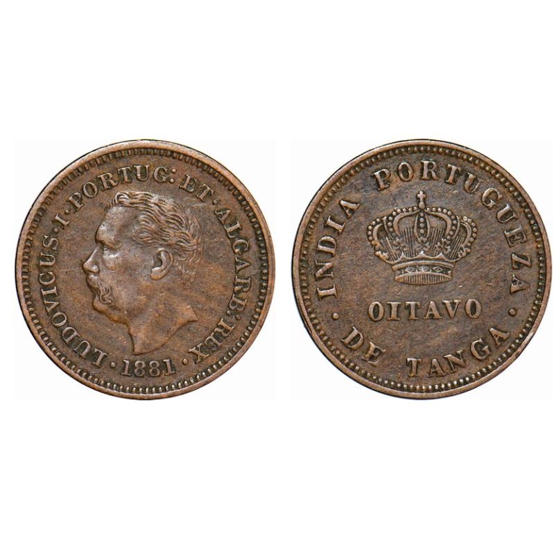 Indo Portuguese, Copper 1/8 Tanga / Oitavo, 3.08g, D. Luis (1861-1889 AD), 1881 AD. A.Gomes (page 602) 09.01. / KM 307. Very Fine+, Scarce.