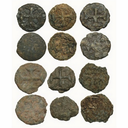 Indo Portuguese, Lead, 4.51g, 17-17mm, John V, Diu issue?, Obv: Crowned arms with grate design, Rev: Standing figure of St thomas. Unlisted, About Very Fine, Very Rare.
