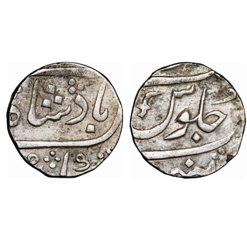 Baroda, Silver Rupee, 11.39g, Fatah Singh Regent (AH 1192-1204 / 1778-1789 AD), Sankheda Mint, INO Shah Alam II, scimitar on reverse. KM Unlisted. Very Fine, Rare.