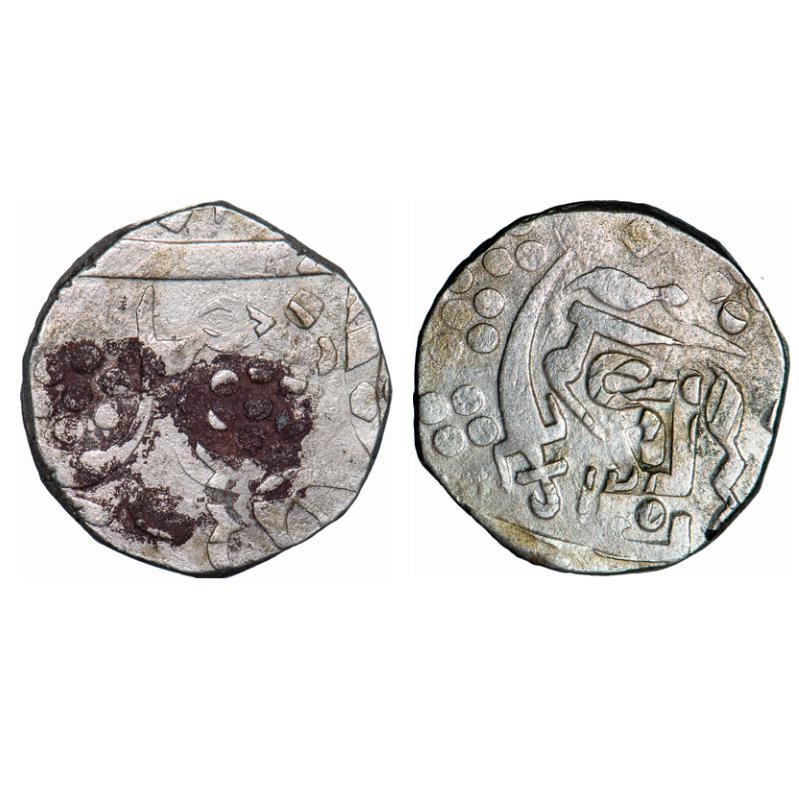 Awadh, Silver Rupee, 11.05g, Asaf ud Daula (AH 1188-1212 / 1775-1797 AD), Najibabad Mint, AH (12)09/35 RY, INO Shah Alam II, Crescent on obverse & Fish & star reverse. MKDM 4.177 type. About Extremely Fine. Very Scarce.