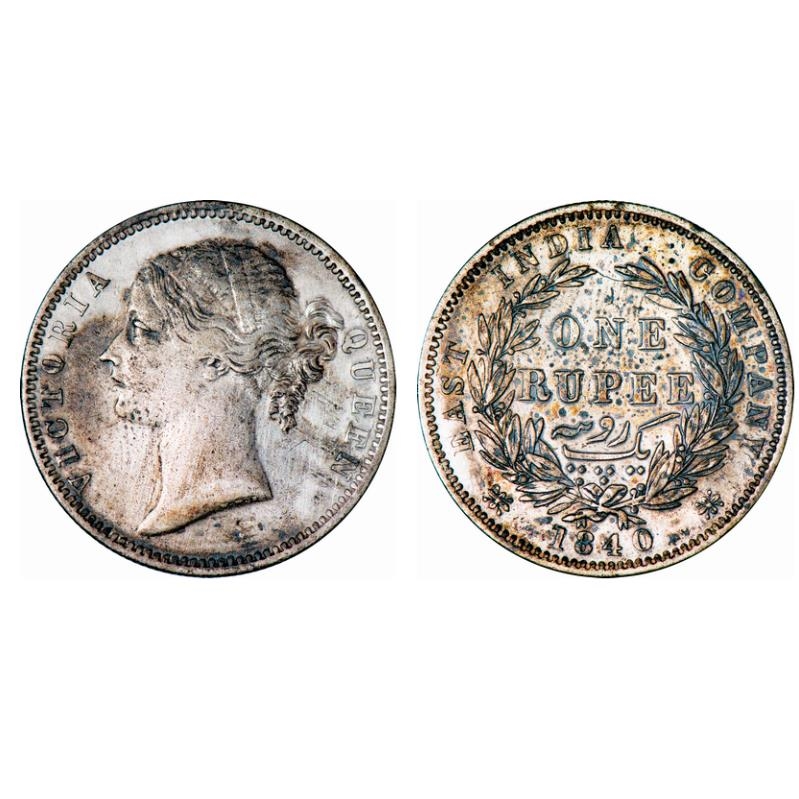 Victoria Queen, Silver, Rupee, 1840, DL, Madras Mint, W.W. 'B' raised (dot after B), Wreath with 28 Berries (13L + 15R). GK 176. About Uncirculated. Very Scarce.