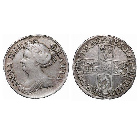 Great Britian, Silver (0.9250 Silver) 6 Pence, 2.99g, Anne, 1711. Obv: Bust to left, Rev: English and Scottish shield halved. KM 522.1. Toned About Very Fine, Rare.