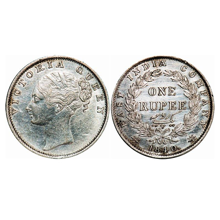 Victoria Queen, Silver, Rupee, 1840, CL, Bombay Mint, C/VI, English Head with completely modified features, Wreath with 35 Berries (20L + 15R). GK 118. About Uncirculated. Scarce.