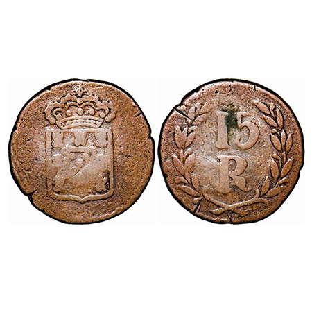 Indo Portuguese, Copper 15 Reis, 9.18g, D. Maria II (1834-1853 AD), Goa issue, N/D. A.Gomes (page 595) 11.01, / KM 230. Fine+, Scarce.