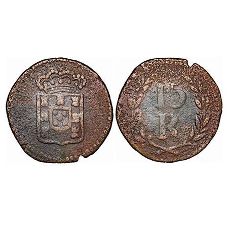 Indo Portuguese, Copper 12 Reis, 7.72g, D.Joao Principe Regente (1799-1816 AD), Goa issue, N/D. A.Gomes (Page 587) 07.02 tytpe / KM 231. Fine+, Very Scarce.