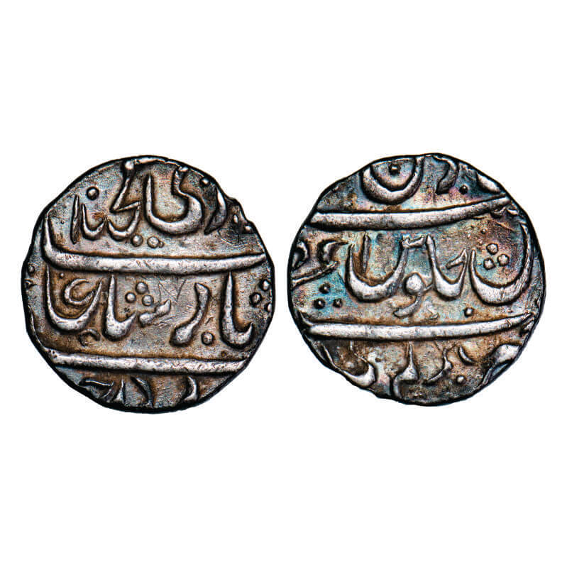 Maratha Confederacy, Silver Rupee, 10.89g, Bagalkot Mint, Pseudo mint name Dar al Khilafat Shahajahanabad, INO Shah Alam II, AH (118)9. M&W T2. About Very Fine, Scarce.