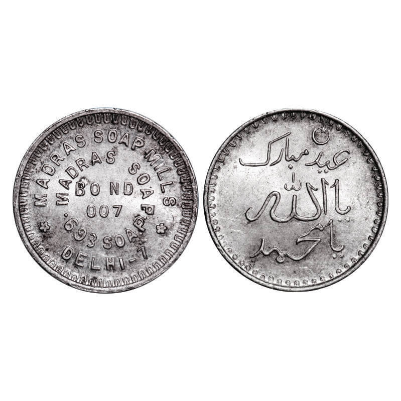 Madras Soap Mills, Silver Token, 4.88g, MADRAS SOAP BOND 007, 693 SOAPS Delhi - 7, & Persian Legend on reverse. Uncirculated, Scarce.