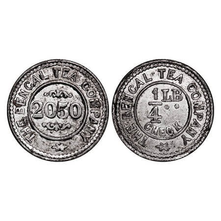 Tea Token, Nickel, 2.31g/22.01mm, Bengal Tea Company, 1/4 LB.. Check, 2050. Prid. Unlisted. Very Fine, Rare.