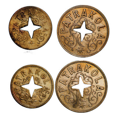 Tea Token, Brass (2 Pcs small & big), 3.94g/23.76mm, & 7.45g/28.32mm, Patrakola (Patrakola Garden, Adampur, Sylhet, Assam).F. Prid. 97, 96. Extremely Fine, Rare.
