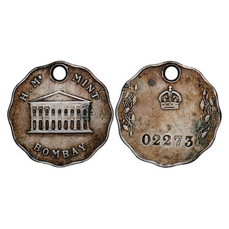 Mint Token, Co-Ni, 11.97g, OBV: H M Mint Bombay, with picture of the Mint Building, Rev: Crown with garlands both sides 02273. About Very Fine, Rare.
