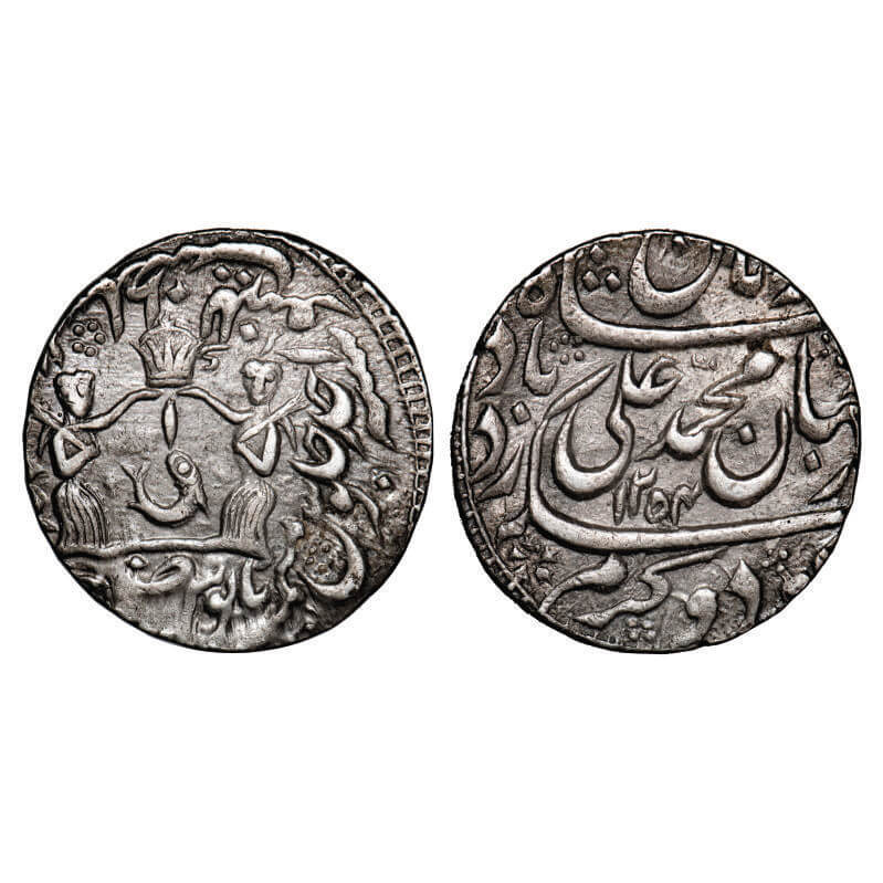 Awadh, Silver Rupee, 11.15g, Muhammad Ali Shah (AH 1253-1258/1837-1842 AD), Mulk Awadh Baitus Sultanat Lakhnau Mint, AH 1254 / RY Ahad (1). MKDM 9.08 type. About Extremely Fine, Very Scarce.