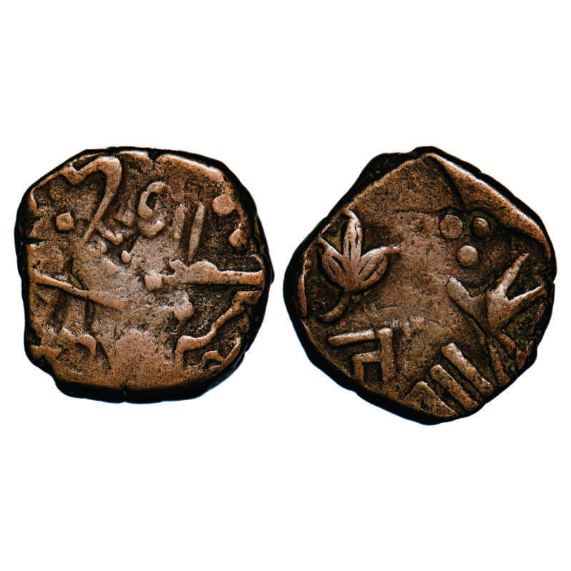 Banswara, Copper Paisa, 10.40g Lakshman Singh (1844-1905 AD), Obv: Samba ends upward, Rev: Samba ends downwards. All within dotted borders. KM 12. Extremely Fine, Scarce.