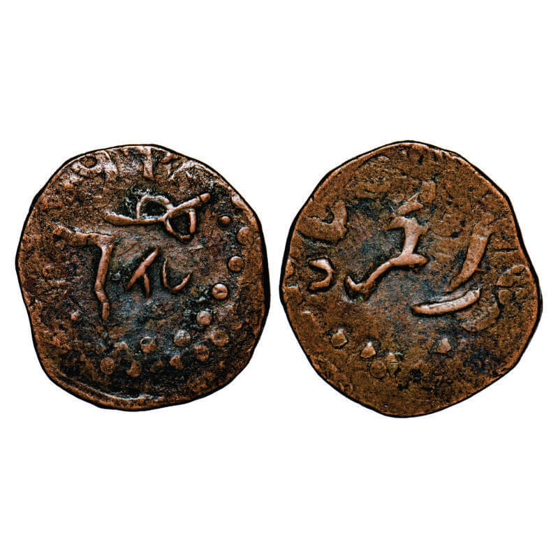 Bela, Copper Falus/Paisa, 6.00g, Mir Ali Khan III (AH 1287-1294/1869-1877 AD), INO Mahmud Khan Durrani, Sikka falus, two persian digit 86 visible. KM c10 type unlisted. About Very Fine, Rare.