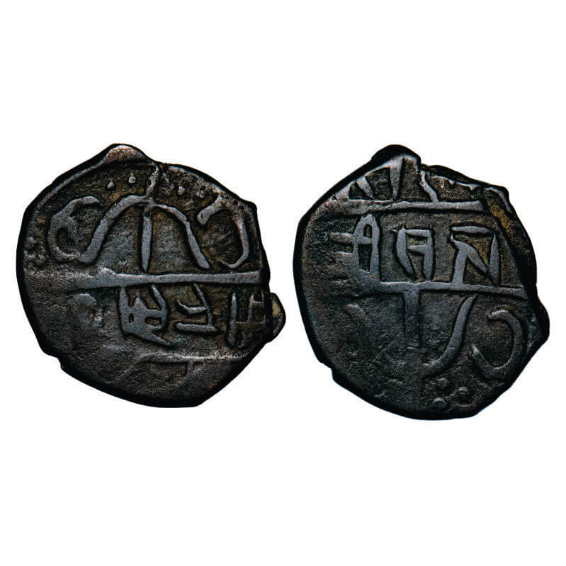 Baroda, Copper Paisa, 10.13g, Sayaji Rao II, double struck, two different dies struck, INO of Muhammad Akbar II, KM 33.5 & 33.9, About Very Fine, Very Scarce.