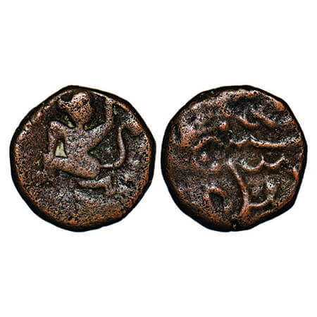 Dhar, Copper Paisa, 11.50g, Obv: Hanuman running left. KM Unlisted type. About Very Fine, Very Scarce.