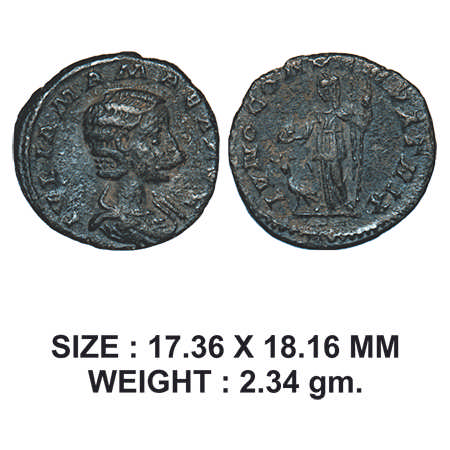 Julia Mamea, Silver, 2.34g, Obv: IVLIA MAMAEA AVG, draped bust right, hair in waved horizontal ridges, looped plait at back of neck; Rev: IVNO CONSERVATRIX, Juno standing slightly left, head left, veiled, patera in right hand, long scepter vertical behind in left hand, peacock standing left with head right at feet on left. Very Fine, Rare.