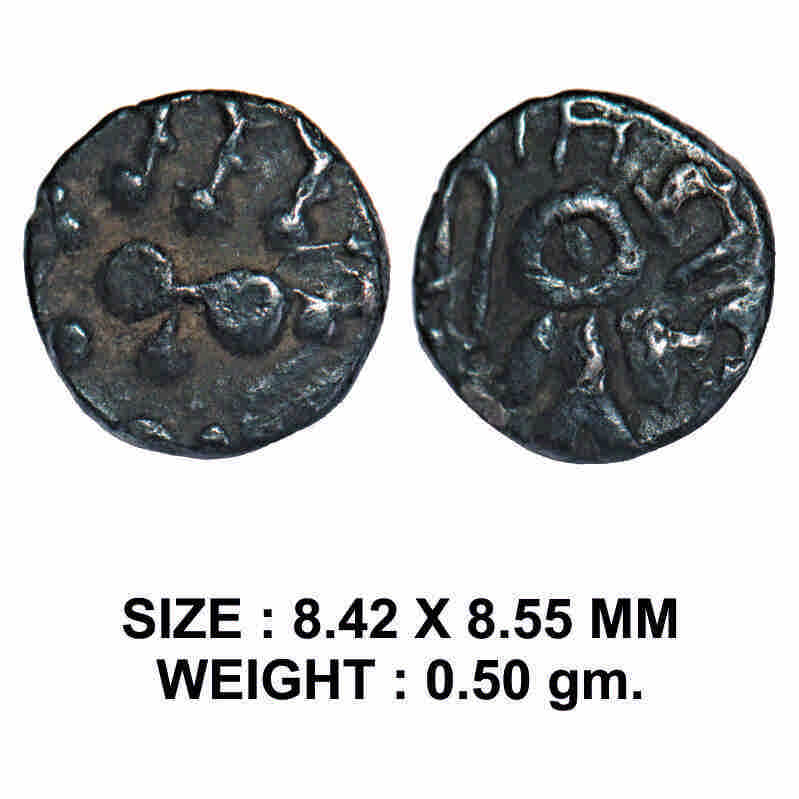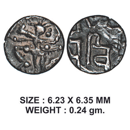 Parmaras of Vidarbha, Sri Bhojdev, Silver Kasu, 0.50g, Obv: Lion facing to right with tail upraised, Rev: Human figure in centre above nagari legend. Bankar&Somkuwar ONS Journal 200. Very Fine, Scarce.