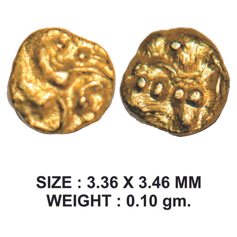 Western Gangas, Gold Gajapati Fanam, 0.10g, Obv: Caparisoned Elephant to right, Rev: Floral design. Mitch K&A 195. About Very Fine, Scarce.