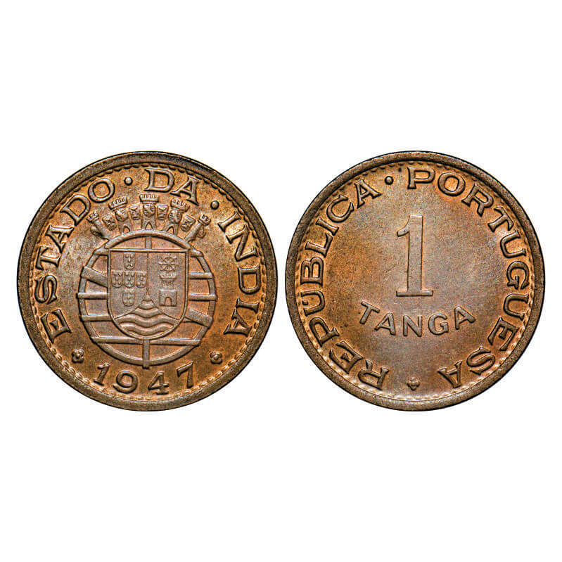 Indo Pourtuguese, Bronze, 6.00g, Republic, 1 Tanga 1947 AD. A.Gomes (page 605) 02.01 / KM 24. Toned Uncirculated, Scarce.