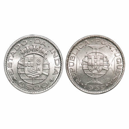 Indo Pourtuguese, Copper Nickle (2 Coins), Republic, 60 Centavos 1958 & 1959. A.Gomes (page 606) 15.01. KM 32.35. Uncirculated, Scarce.