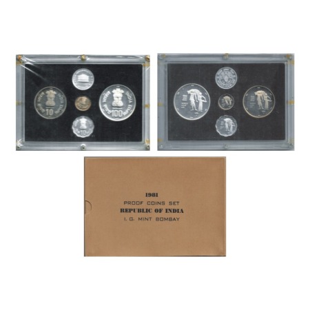 1981, Proof coin Set of 100 & 10 Rupees, 25 &10 Paise, World Food Day, Bombay Mint, with Cover & certificate. S. Reddappa 23.16. Proof, Scarce.