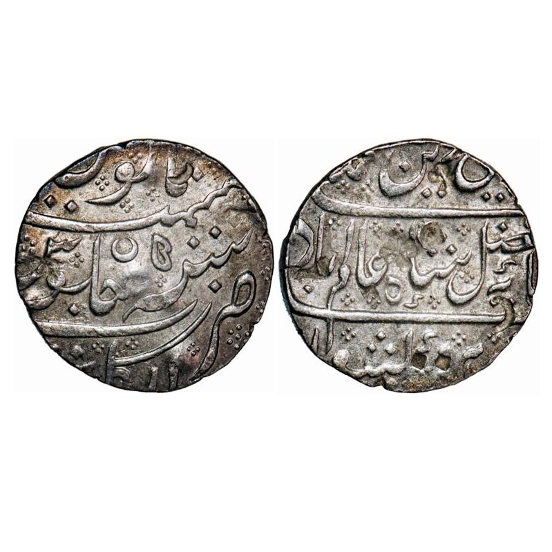 Indo French, Silver Rupee, 11.34g, Arcot Mint, AH (12)21/43 (sic) RY, INO Shah Alam II, with crescent on reverse. KM 15. About Extremely Fine, Scarce.