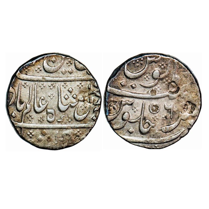 Indo French, Silver Rupee, 11.29g, Arcot Mint, 6 RY, INO Shah Alam II, with crescent on reverse. KM 15. Very Fine, Scarce.