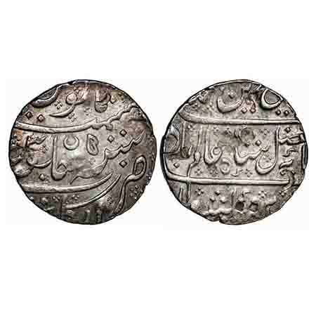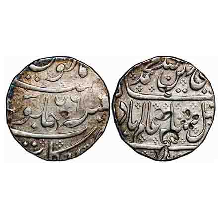 Indo French, Silver Rupee, 11.33g, Arcot Mint, AH (122)1/43 (sic) RY, INO Shah Alam II, with crescent on reverse. KM 15. About Extremely Fine, Scarce.