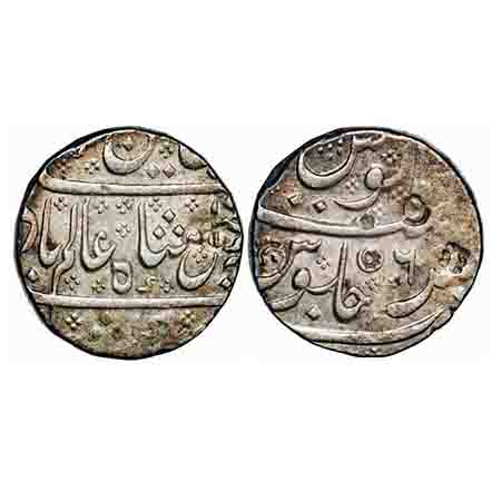 Indo French, Silver Rupee, 11.34g, Arcot Mint, 6 RY, INO Shah Alam II, with crescent on reverse. KM 15. Very Fine, Scarce.