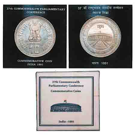 1991, Unc 10 Rupees, 37TH COMMONWEALTH PARLAMENTORY CONFERENCE, within acrylic box & original cardbox. UNC. Very Rare.