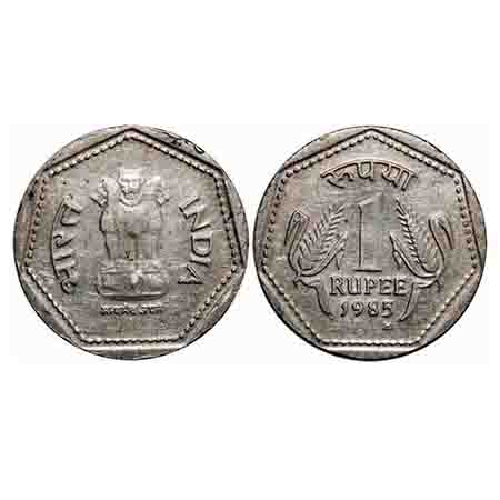 1 Rupee, Cu-Nickel, 1985, Birmingham Mint, Light weight 4.65g, (normal weight is 6.00g). About Uncirculated. Scarce.
