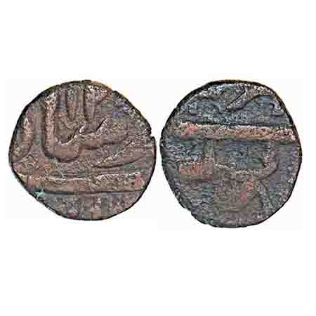 Maratha Confederacy, Copper ½ paisa, 4.62g, Akbarabad (Agra) mint, INO shah alam II, Rev: pistol as a mint mark AH 12xx. M&W T5. Very Fine, Scarce.