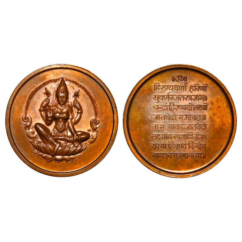 Temple Token, Copper, 21.30g, Obv: seated Posture of Goddess Lakshmi, Rev: Hindu Slogan/stotra. Uncirculated, Scarce.