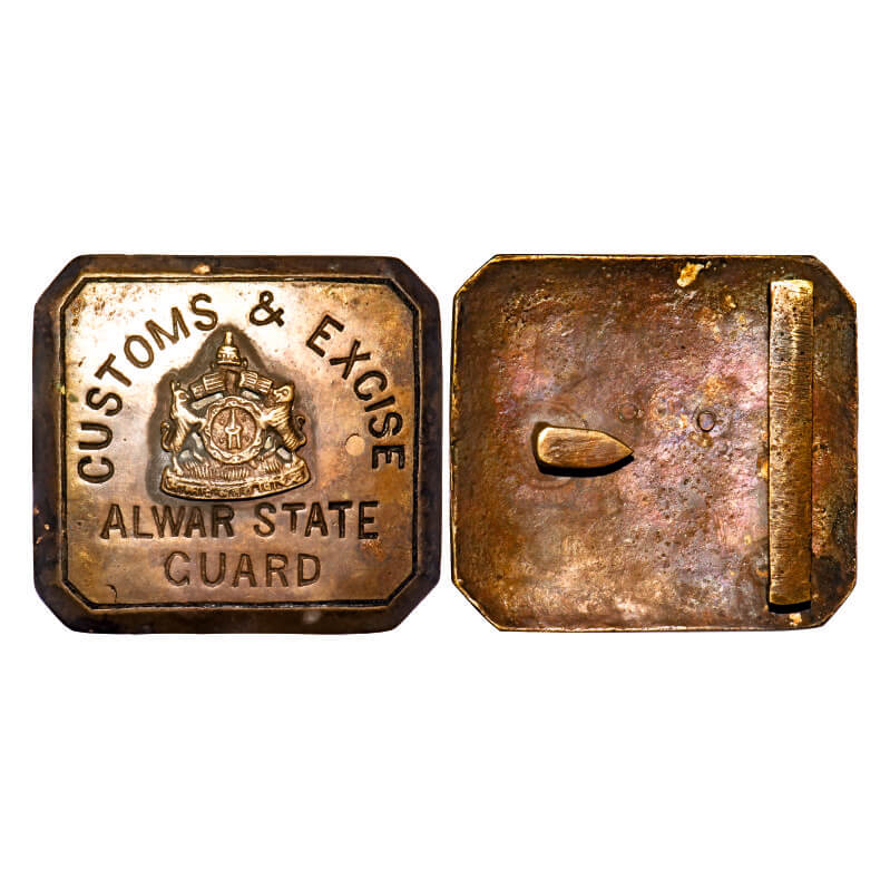Alwar State, Brass Buckel, 101.35g, 66.46 x 61.27mm, Customs & Excise, with monogram of Alwar State Guard. Very Fine+, Scarce.
