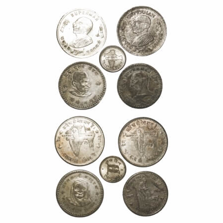 Mahatma Gandhi Token, Mixed Metal, (5 Tokens), Obv: bust of Mahatma Gandhi Rev: India map, Kasturba Gandhi, and mahatma Gandhi. Extremely Fine to Uncirculated, Scarce.
