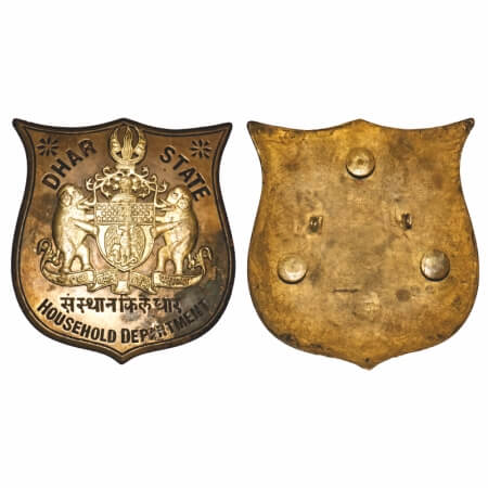 Dhar State, Brass Chapra, 308.00g, 9x10 inch, Dhar State Coat of Arms, DHAR STATE, Sansthan Qiledhar, Household Department. Extremely Fine, Very Scarce.