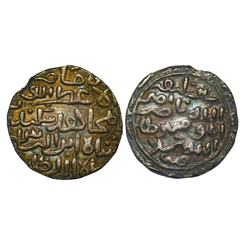 Bengal Sultanate, Silver Tanka (small flan), 10.58g, Nasir Al-Din Nusrat (AH 925-938 / AD 1519-1531), AH 933, Dar al-Darb Mint. Obv: al-sultan bin al-sultan nasir al-dunya wa'l din abu'l muzaffar, Rev: nusrat shah al-sultan husain shah al- sultan al- hussaini khallada mulkahu. G&G B805 type but small flan. Very Fine, Scarce.