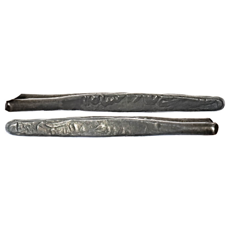 The above coin is known only from two other specimens. Rajapur was a famous port in Ratnagiri district of Maharashtra in medeival India. Along with towns Dabhol and Sangameshwar which were all situated within the Konkan strip. These towns were under the rule of Adil Shahs of Bijapur in the 16 &17 centuries. A hoard of nearly eight hundred larins turned up near Kolhapur in 1998, it contained the usual mixture of larins from the Persian Gulf and those of Adil Shah. But it also contained about half a dozen very rare larins with undecipherable script and a singularly unique specimen with the clear mint name Rajapur. The discovery of this Larin is important not only for numismatics but also historically as it proves that the town of Rajapur was under the control of Ali Adil Shah II. This was the time when Aurangzeb had become very powerful in the Deccan. The Mughal army was at arm’s length from the Konkan and Aurangzeb finally captured Rajapur in the fifth decade of his reign.