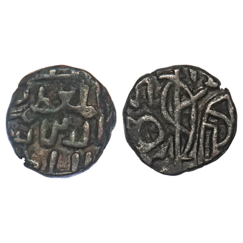 Dehli Sultanate, Billon Jital, 3.61g, Raziya Sultan (AH 636-637 / 1236-1240 AD), Dehli, Obv: al sultan al muazzam radiyyat al din bin sultan, Rev: Horseman to right. G&G D105. About Very Fine, Scarce.