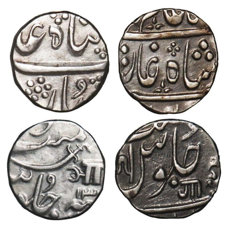 Baroda, Silver Rupee & ½ Rupee (2 Coins), 11.45 & 5.72g, Anand Rao (AH 1215-1235 / 1800-1819 AD), Ahmadabad Mint, INO Muhammad Akbar II, nagari letter 'Gaa' and ankusi on reverse. KM C 19 & 18. Very Fine, Scarce.