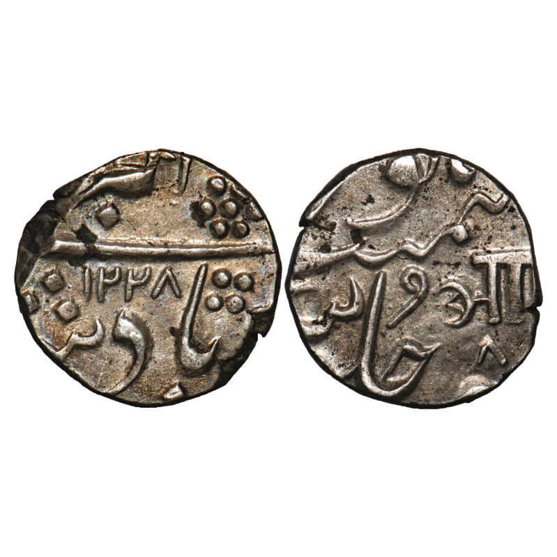 Awadh, Silver Rupee, 11.09g, Saadat Ali Khan (AH 1212-1229/1798-1814 AD), Bareli Qita Mint, INO Shah Alam II, AH 121(5)/37 RY, Persian ('Mim'), downword dagger & flower bud on rev. MKDM 6.08. Very Fine, Scarce.