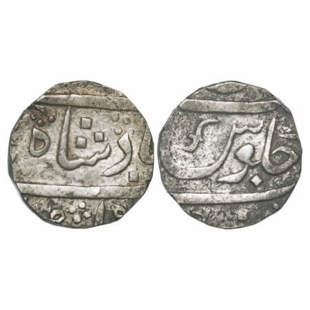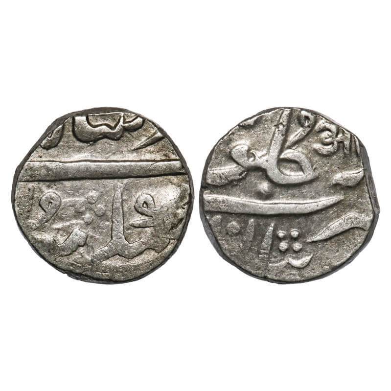 Baroda, Silver Rupee, 11.37g, Fatah Singh Regent (AH 1192-1204 / 1778-1789 AD), Sankheda Mint, INO Shah Alam II, scimitar on reverse. KM Unlisted. Very Fine, Rare.