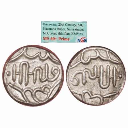 Banswara, Silver Rupee, Lakshman Singh (1862-1925AD), Samba legend on both side. KM 23. NGS graded MS 60+ Prime, Scarce.