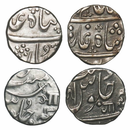 Baroda, Silver ½ Rupees (2 Coins), 5.66g, Anand Rao (AH 1215-1235/1800-1819 AD), with Nagari 'Ga' INO Shah Alam II, & 'Aaa'/13 INO Muhammad Akbar II. RY. KM 18 & 26 type. Very Fine+, Scarce.